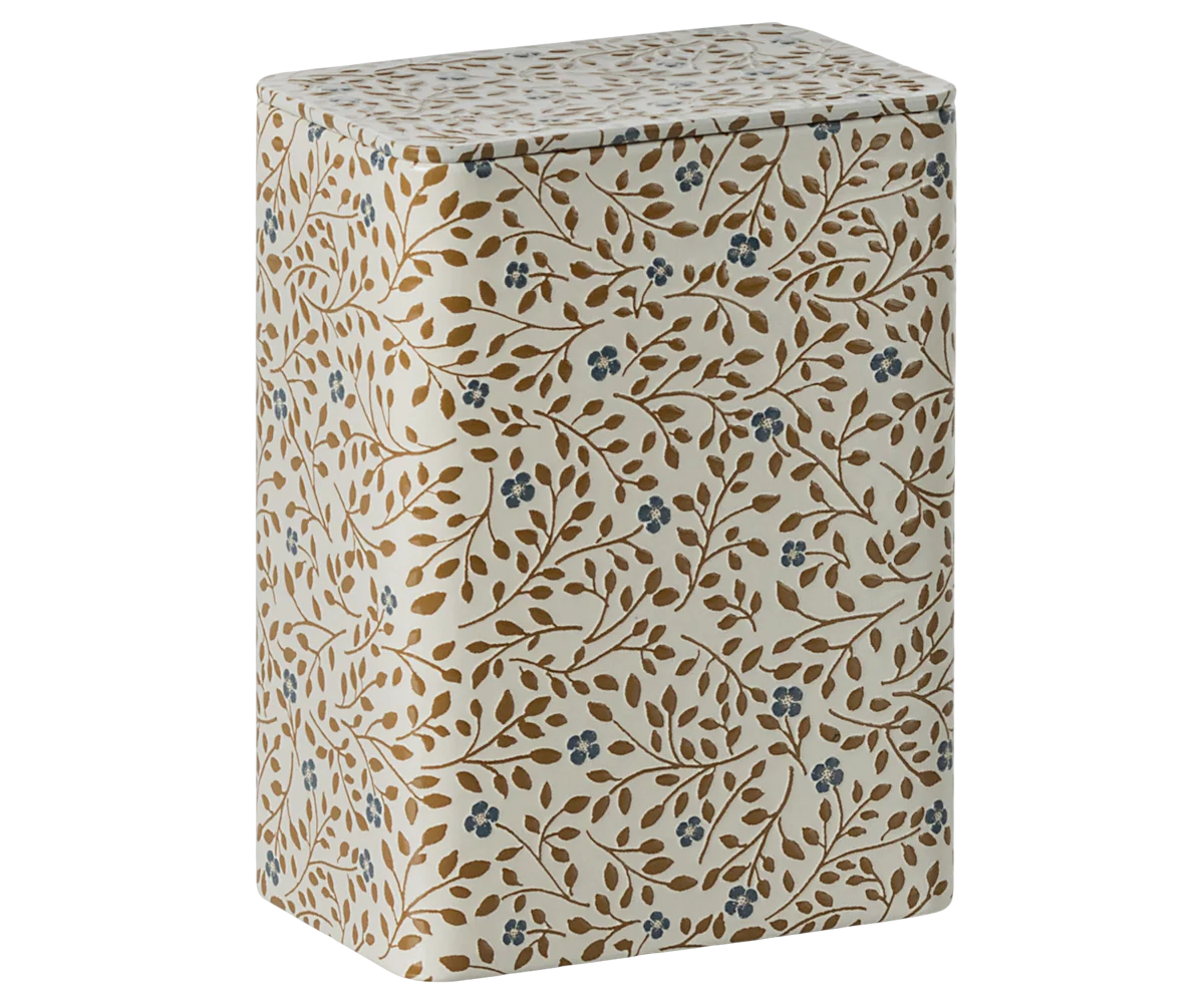 Un set di due pezzi in metallo e decorato con una graziosa stampa floreale e un rilievo. Il modello più grande è di colore blu e quello più piccolo è di colore marrone. Potrete riporvi il vostro tè o caffè preferito o quello che preferite.